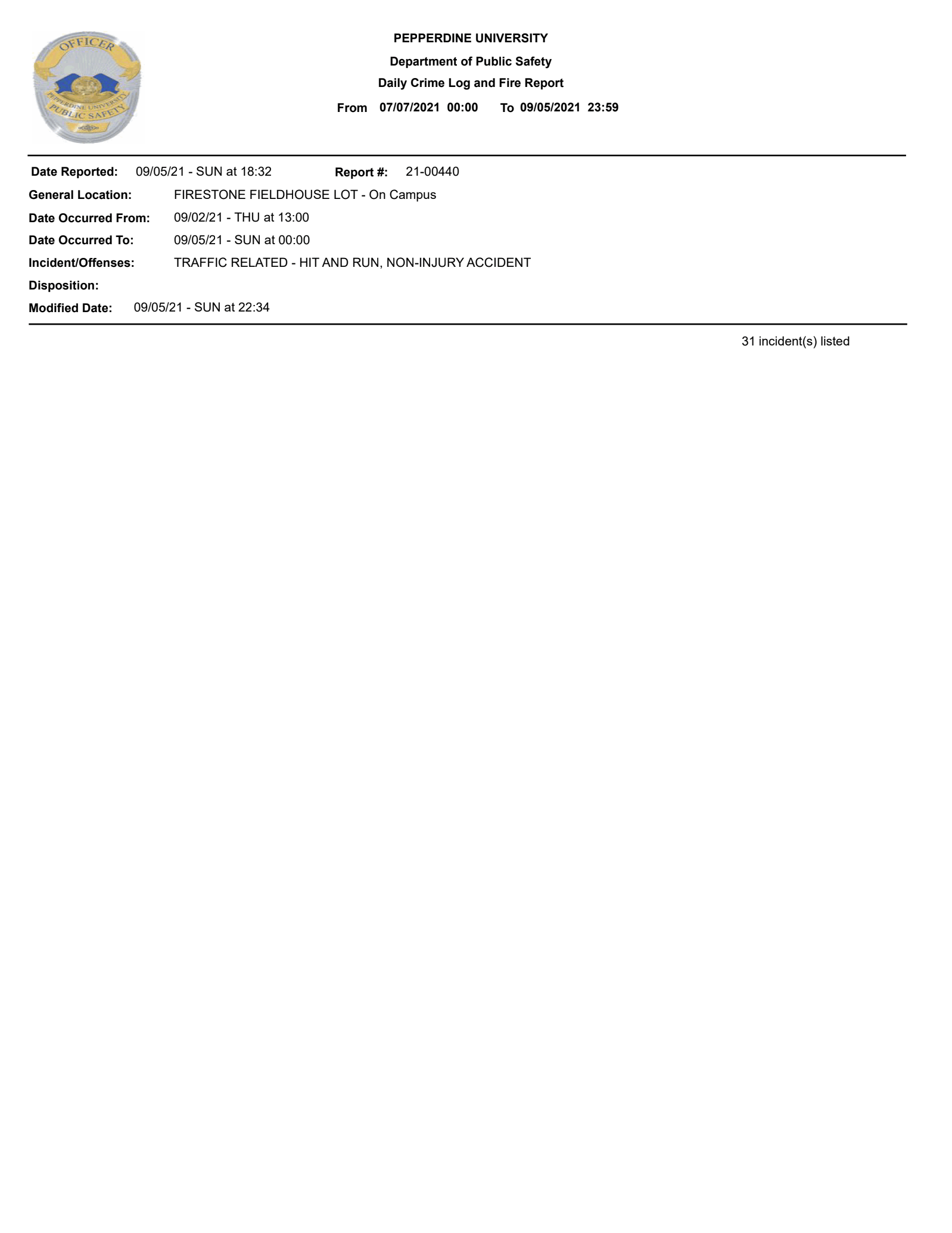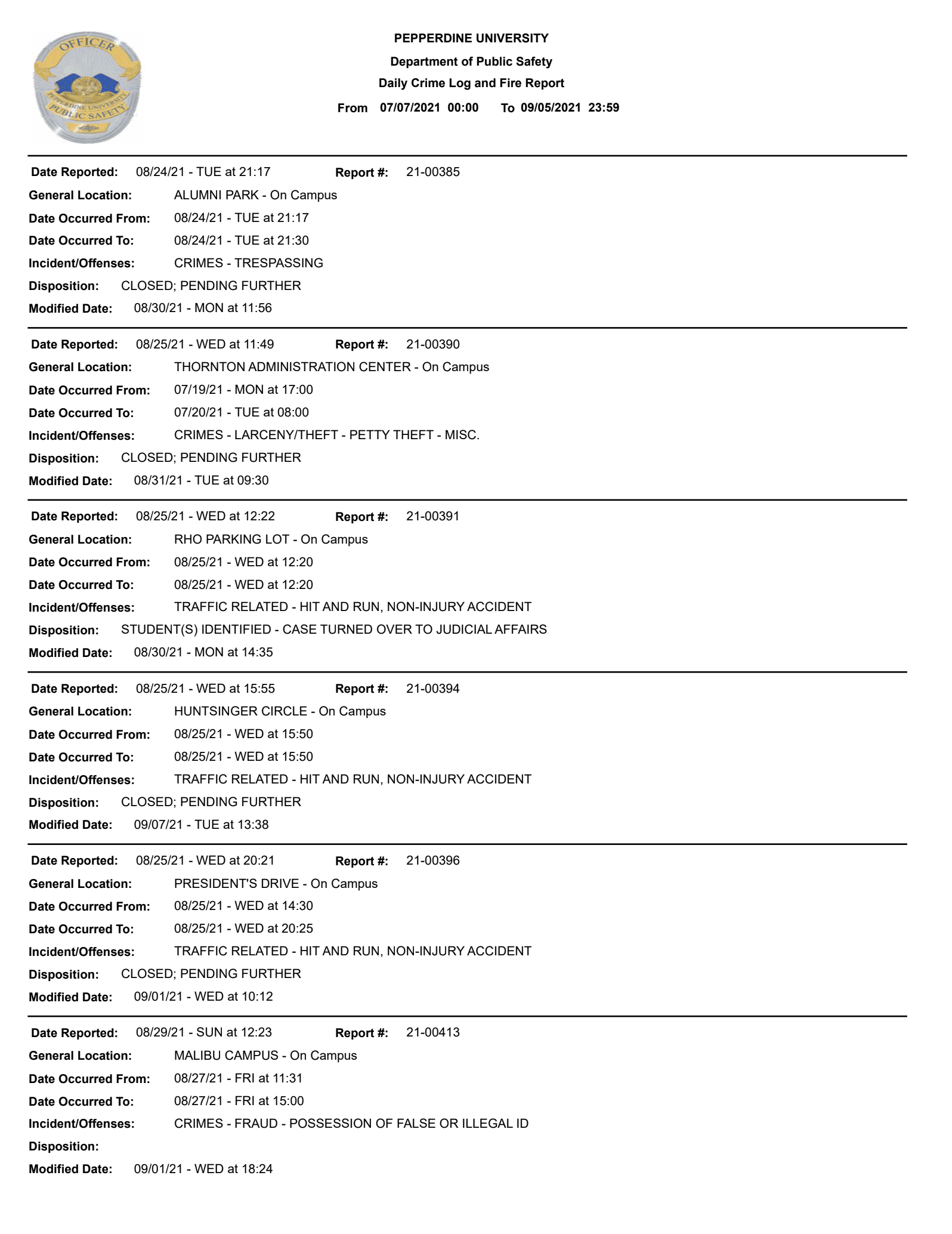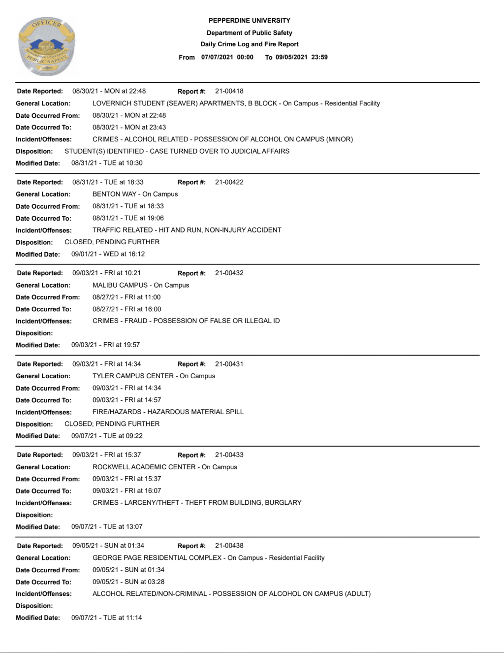 DPS Crime Reports: Aug. 24 – Sept. 5 September 15, 2021 by Emily Shaw ___________________ Follow the Graphic on Twitter: @PeppGraphic