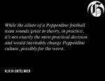 Transparency Item: This is the opinion and perspective of this writer. Coming to Pepperdine, the fact we didn’t have a football team never really bothered me. I can count on one hand the number of football games I attended in high school. Not because I didn’t care, but because my school's team wasn't that good. This brings me to my first point as to why Pepperdine does not … [Read more...] about Rant: Having a Football Team is Pointless