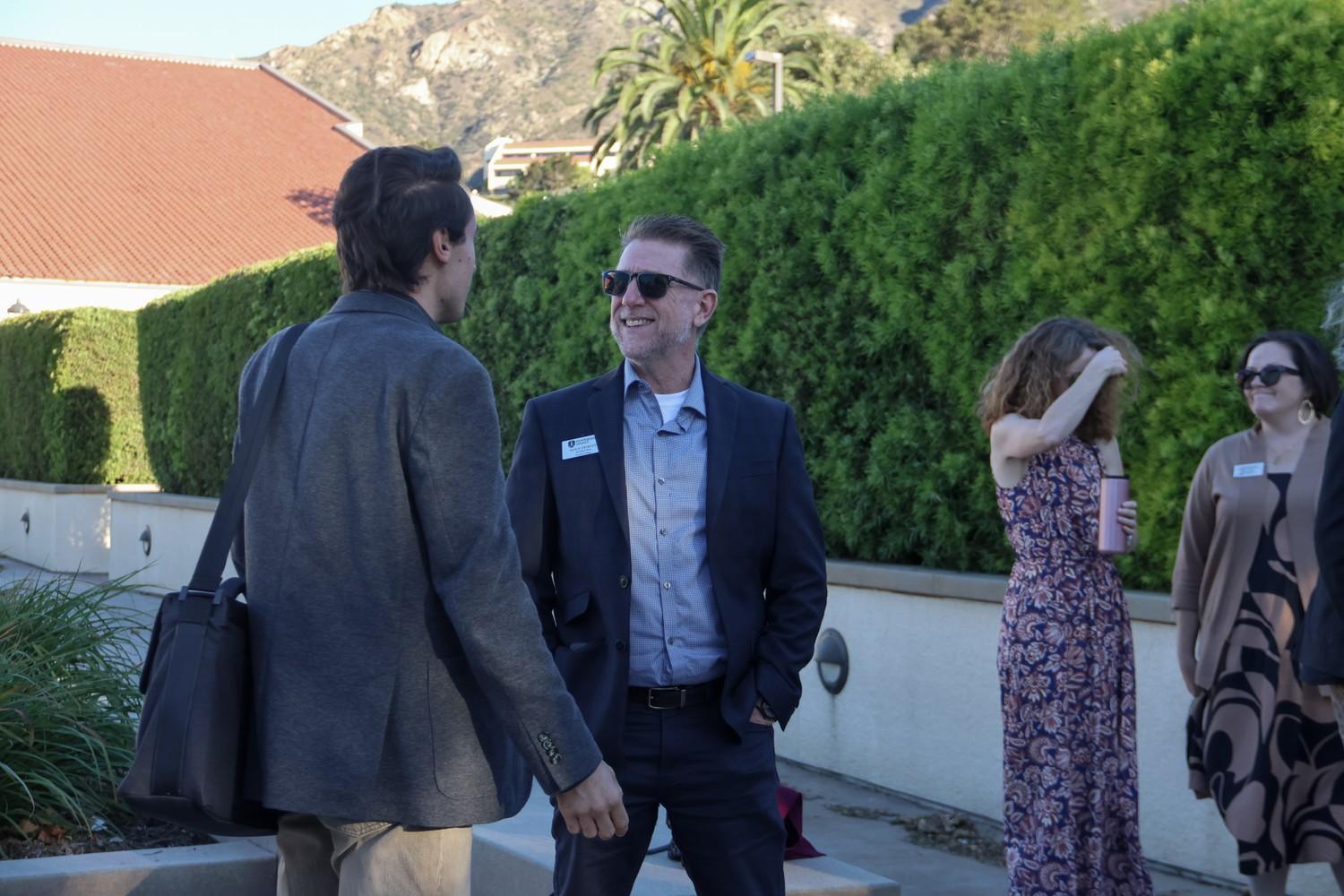 Seaver faculty across different divisions stopped by the protest, which several Department of Public Safety (DPS) officers and vehicles surrounded. Doug Hurley and Brittany Skinner, associate deans of Student Affairs, and Maura Page, director of Residence Life, were also present. Hurley said he was there to support students and the right to free speech.