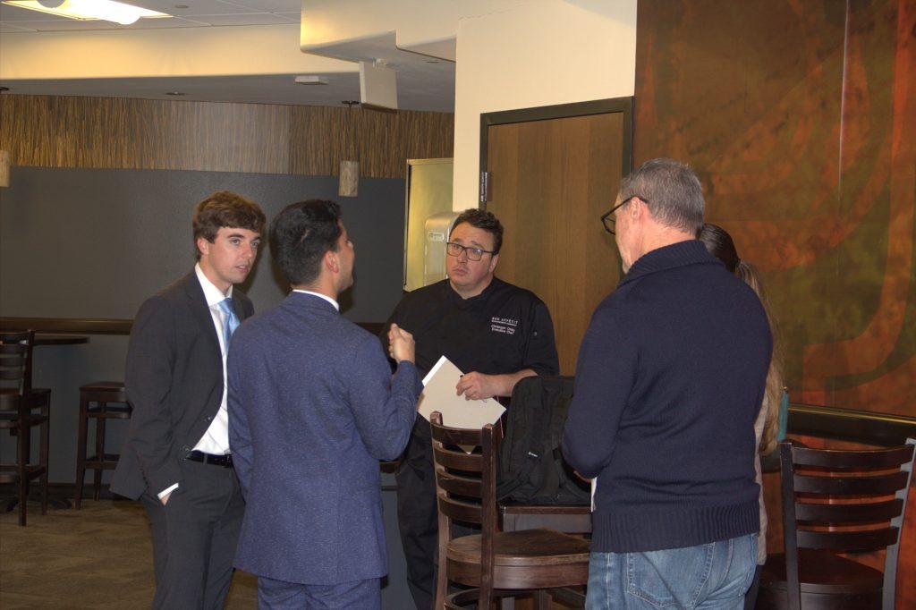 President H.L. McCullough and Senior Class President Julian Moghaddasi meet with Bon Appétit staff in the HAWC. Bon Appétit is looking into adding a booth during Waves Market on Tuesdays, Freshmen Class Senator Maya Sandoval said.