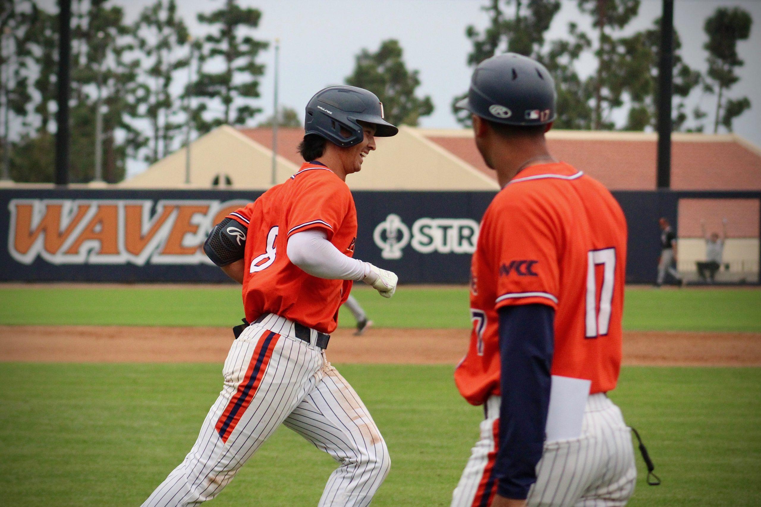 Patterson rounds first base after hitting a walk-off home run against Cal State University, Northridge to defeat the Matadors 6-5 on March 31 at Eddy D. Field Stadium. Patterson leads the Waves in eight home runs this season.