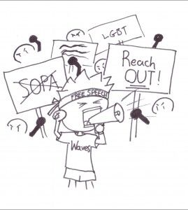 Let’s revive the excitement that ignites any time we host a free speech wall. The statements of passion emblazoned on the wall should not stay dormant throughout the rest of the year. Imagine all the good that fervor could accomplish if it was translated into on and off-campus activism. We should continue speaking out on both sides of Reach OUT’s campaign, but more importantly, we should start posting real calls to action on the freedom wall (yes, you too can post anything. The worst that can happen is that it gets taken down.) Keep tabs on other pressing governmental decisions like SOPA. Even if the recent debates don’t particularly interest you, take a cue from that passion and start challenging the campus to care.