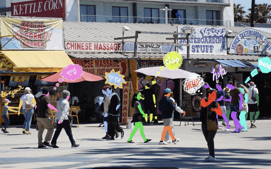 People walk on the Venice Beach Boardwalk on March 31. Venice Beach is filled with both tourists and locals, where a mix of languages can be heard all around. Design by Christine Park