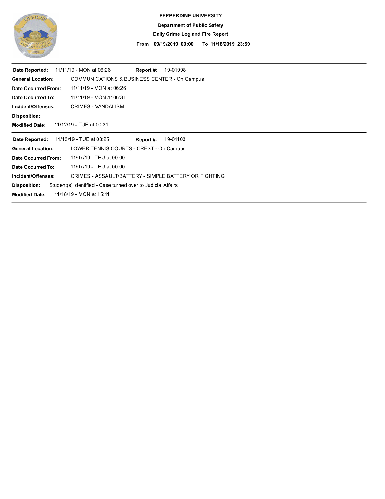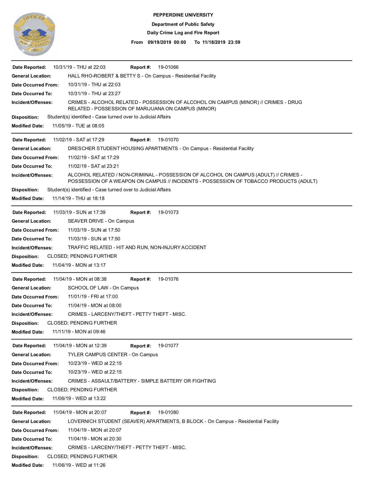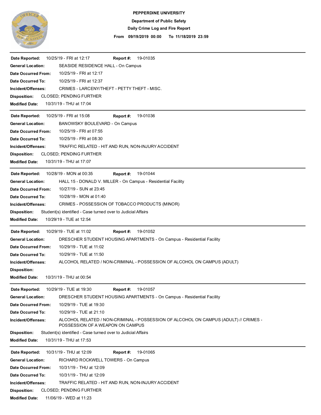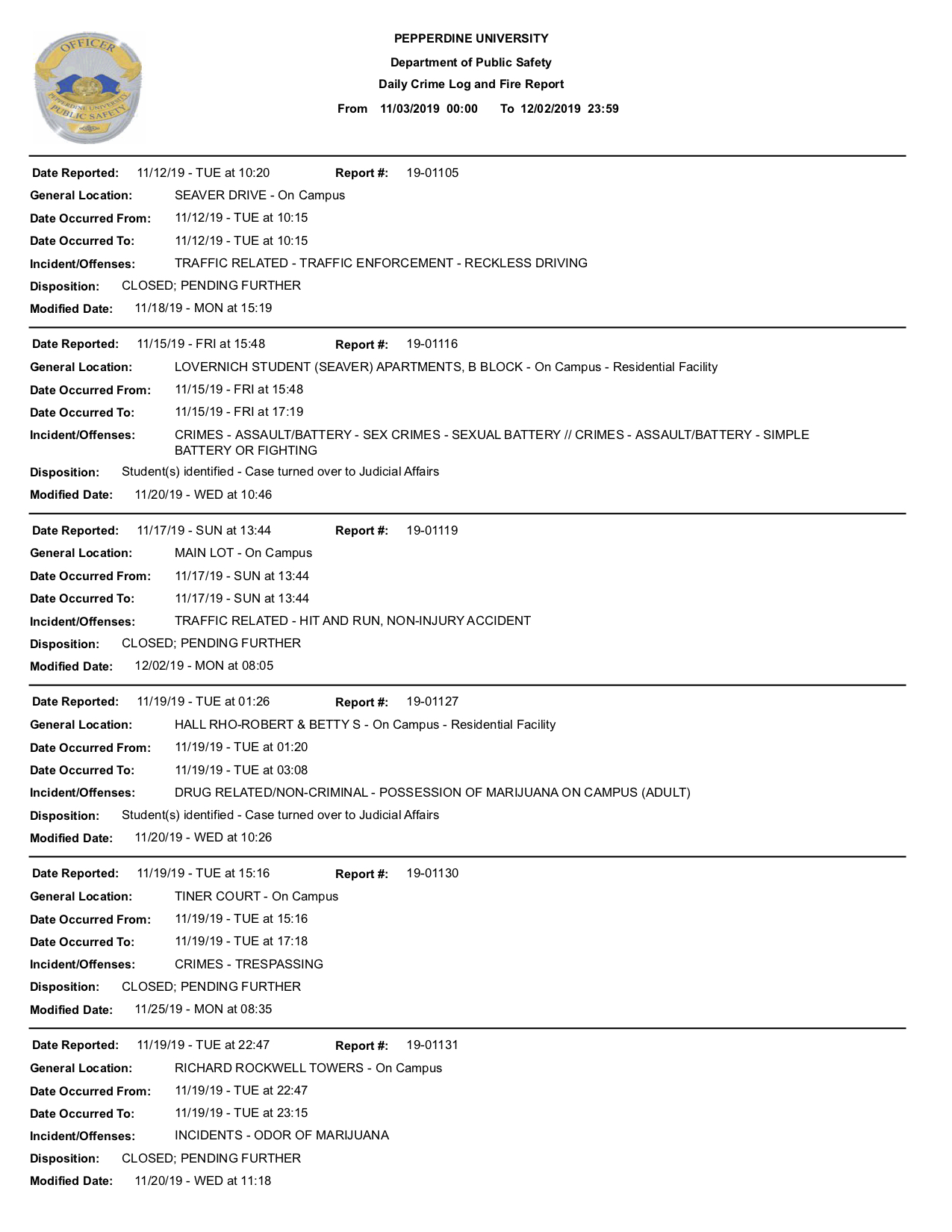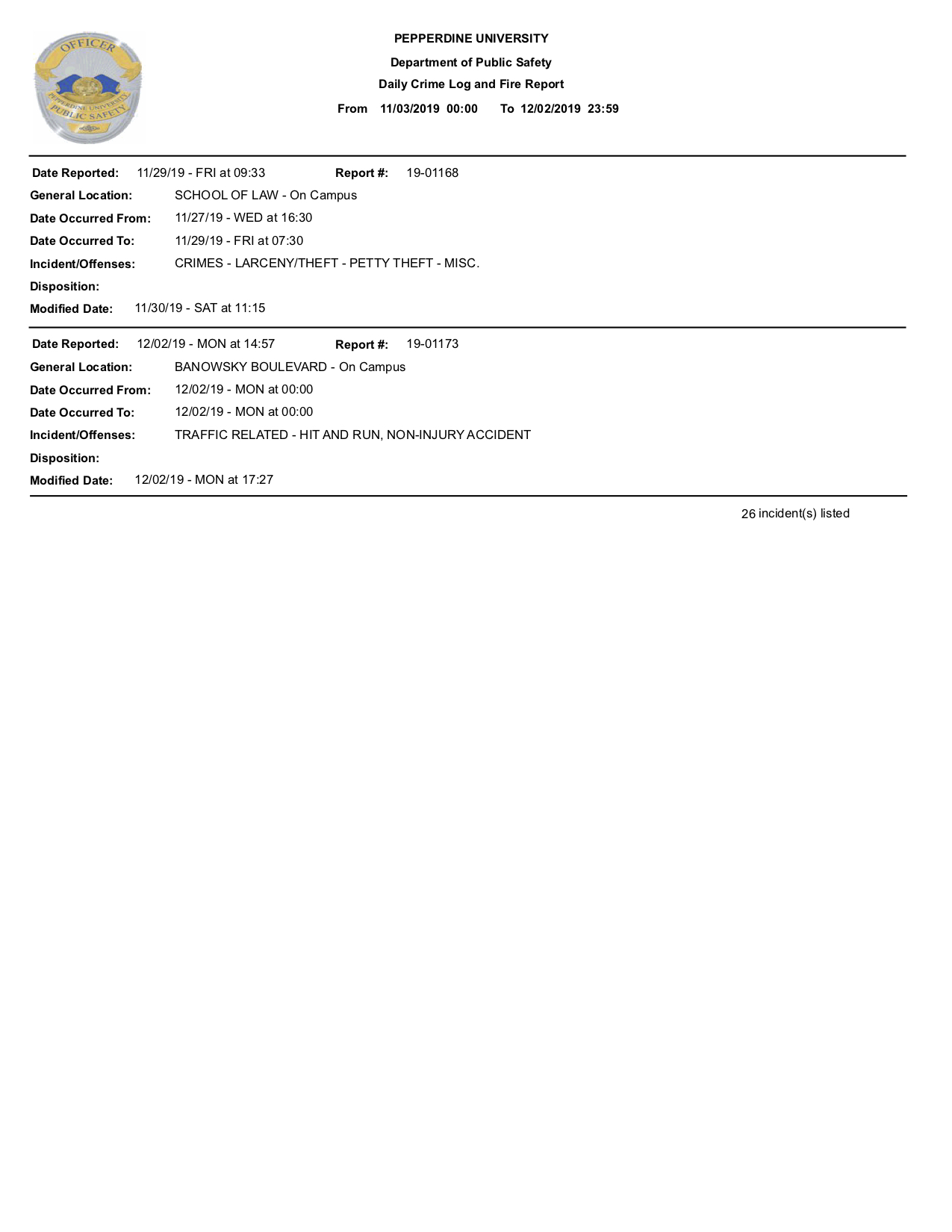 DPS Crime Reports: Oct. 25 – Dec. 2