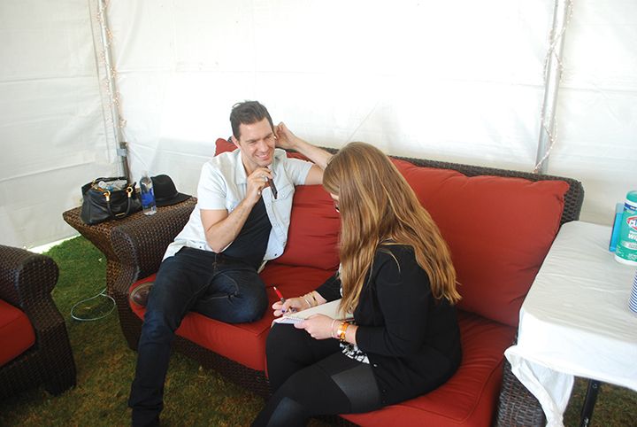 Where we would hold the interview (as it was a bit loud due to the Plain White T’s sound checking and practicing) was a struggle to figure out. We decided on the white tent complete with a table and two brown wicker benches with red cushions.