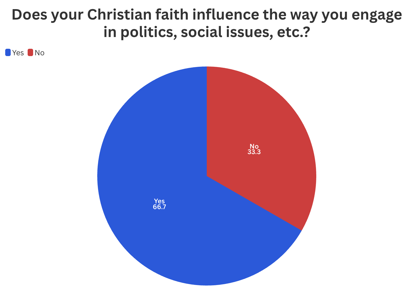 The poll reports about two thirds of students feel their Christian faith influences the way they engage in politics and social justice. The remaining third felt their faith does not influence their engagement.