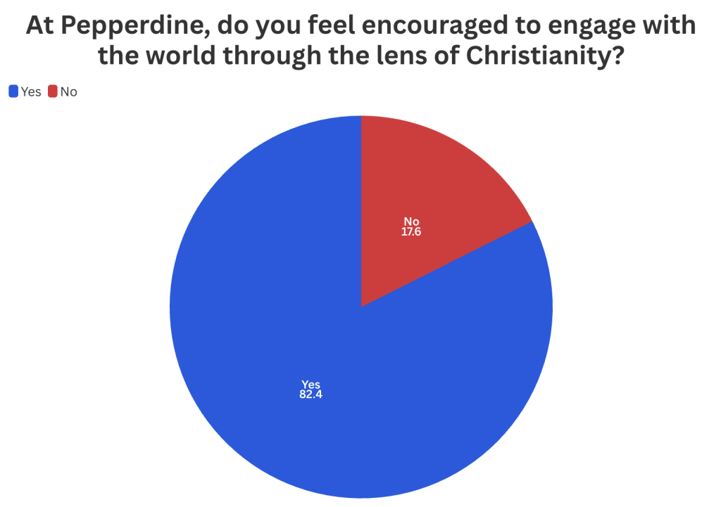 The poll reports that 82.4% of students feel Pepperdine encourages them to engage the world with the lens of Christianity. 17.6% felt otherwise.
