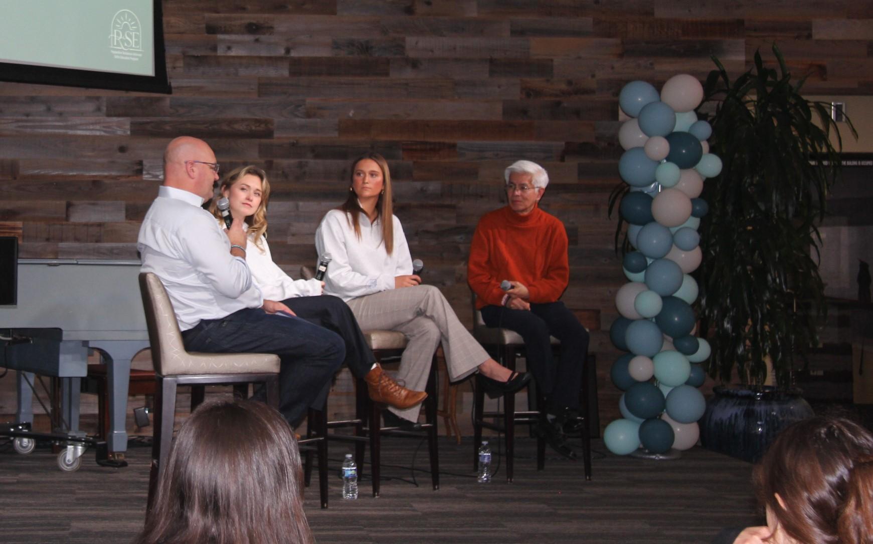 (From left to right) Arik Housley, alumna Lexington Russell (’25), junior JoJo Billings and Hung Le, vice chancellor for Alumni Affairs sit together for a panel discussion at the 2026 RISE Summit on Feb. 20. During the discussion, each panelist spoke about how grief is not linear and looks different for everyone.