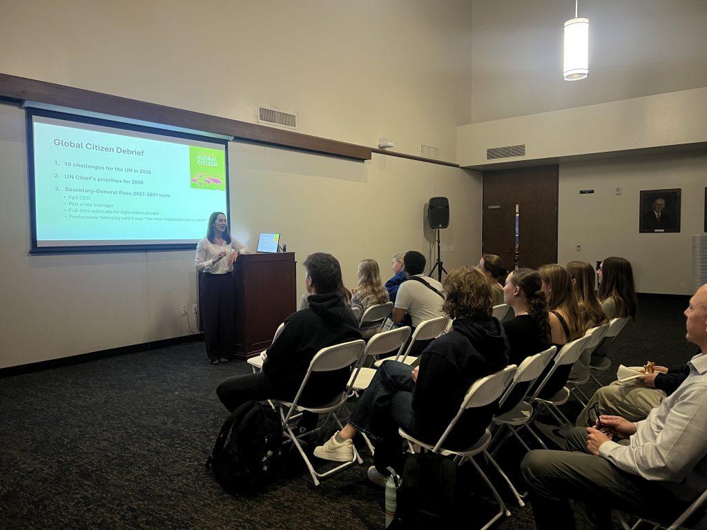Students listen at the Global Citizen Debrief at the Fireside Room on Jan. 26. In collaboration with Model UN, students learn about the structure and current agendas of the United Nations. Photo courtesy of Taniah Orr
