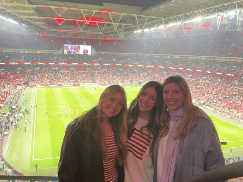 Juniors Kinley Billinglsey (left), Madi Castellanos (middle) and Josie Politzer (right) at a football match at Wembley Stadium on Nov. 30. The group said they watched as the United States and England women’s teams faced off against each other. Photo courtesy of Madi Castellanos