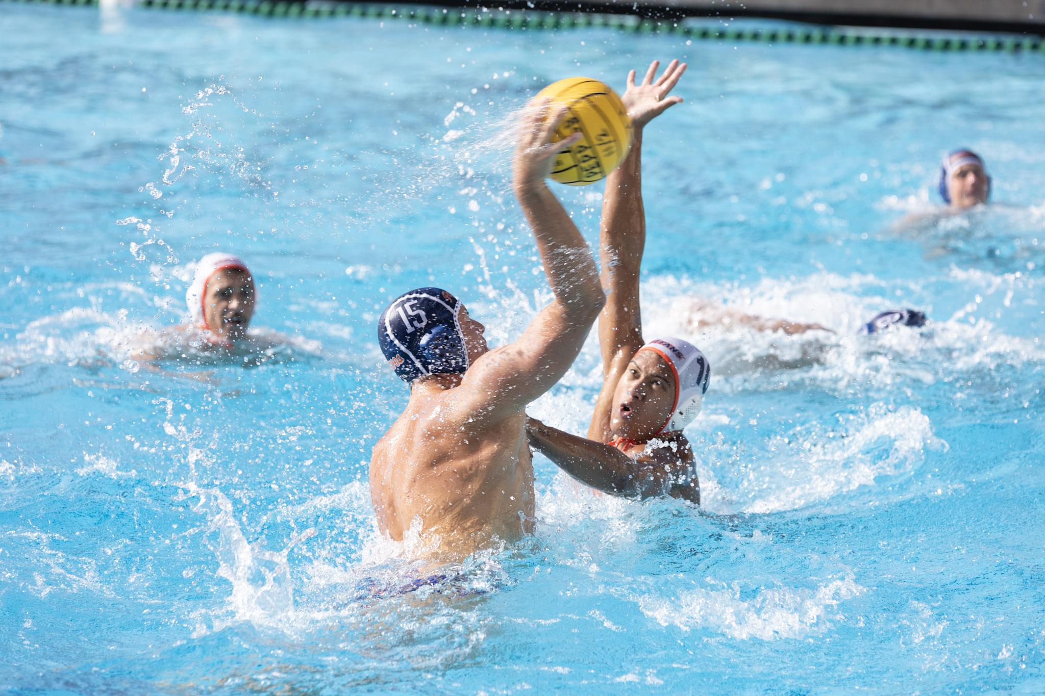 Sophomore utility Owen Tift fights off an opponent during the game against Cal State Fullerton on Nov. 2 at Raleigh Runnels Memorial Pool. Tift’s lone goal of the game was his twentieth of the season, according to Pepperdine Athletics.