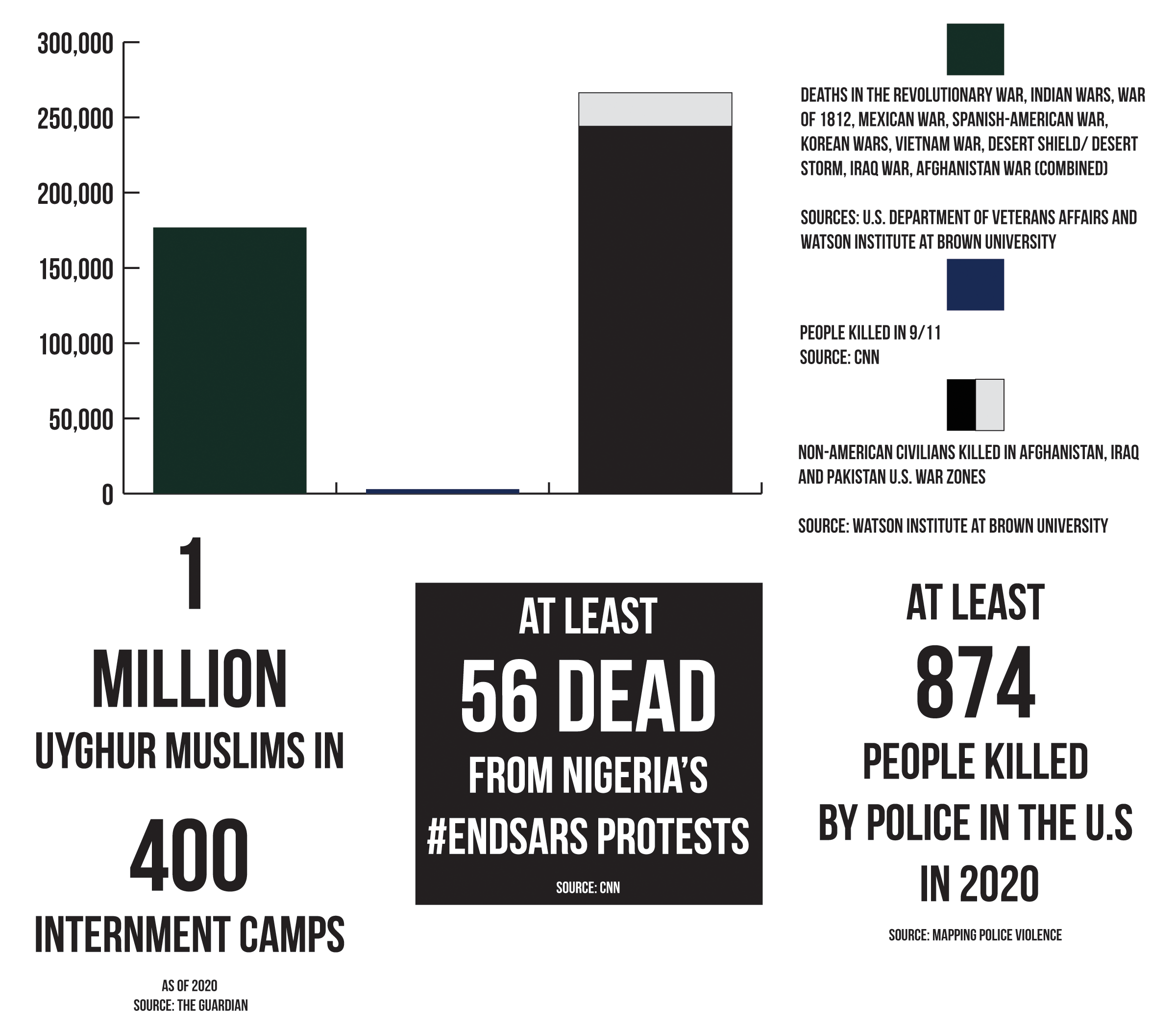 Now, more than ever, we must pay attention to the mass death and injustice happening around the world — both related and unrelated to COVID-19. The U.S. no longer has the same sense of patriotism and camaraderie we once displayed in past times of national peril. The only solution is to prevent ourselves from experiencing news fatigue, becoming desensitized to violence and losing touch of our humanity.