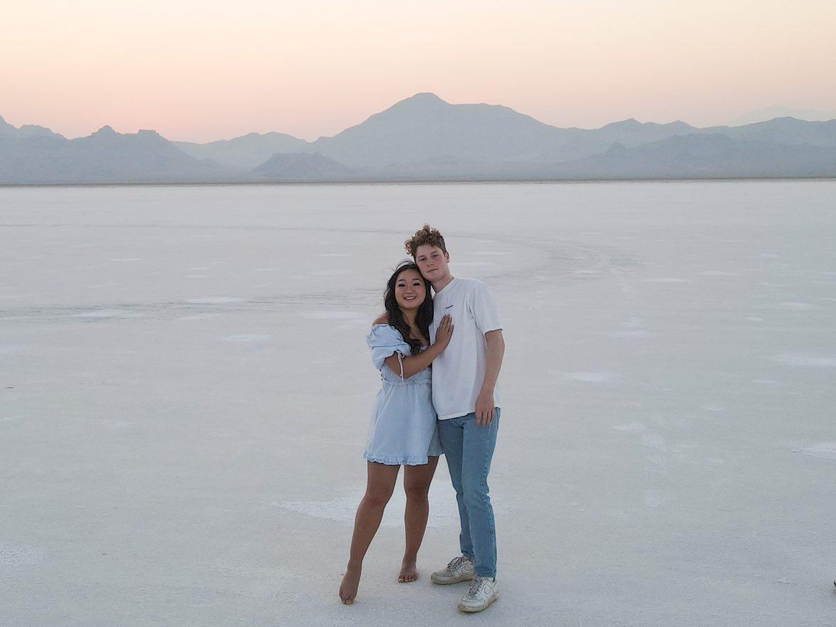 Senior Sabrina Kuo and her boyfriend Dylan Coleman pose in the Bonneville Salt Flats in Utah during their limited time together in July 2021. Kuo said that long distance is definitely worth it. Photo courtesy of Sabrina Kuo