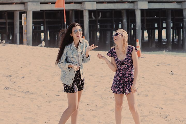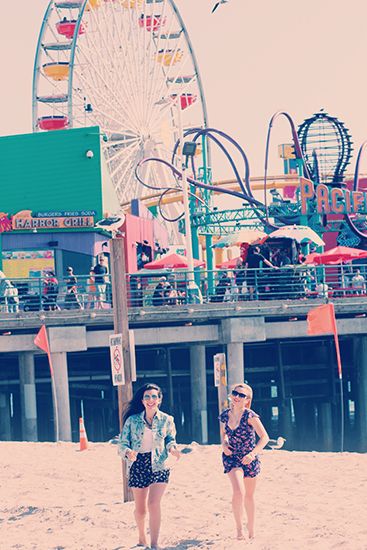 In a photo shoot with my sorority sister Stephanie Green on the Santa Monica Pier, we are both wearing floral print. Although it is a commonly used fabric, we tried to make it our own. I paired my flowy floral shorts with an oversized jean jacket and a white T-shirt. A statement necklace and classy-cool shades are added for some extra edge.