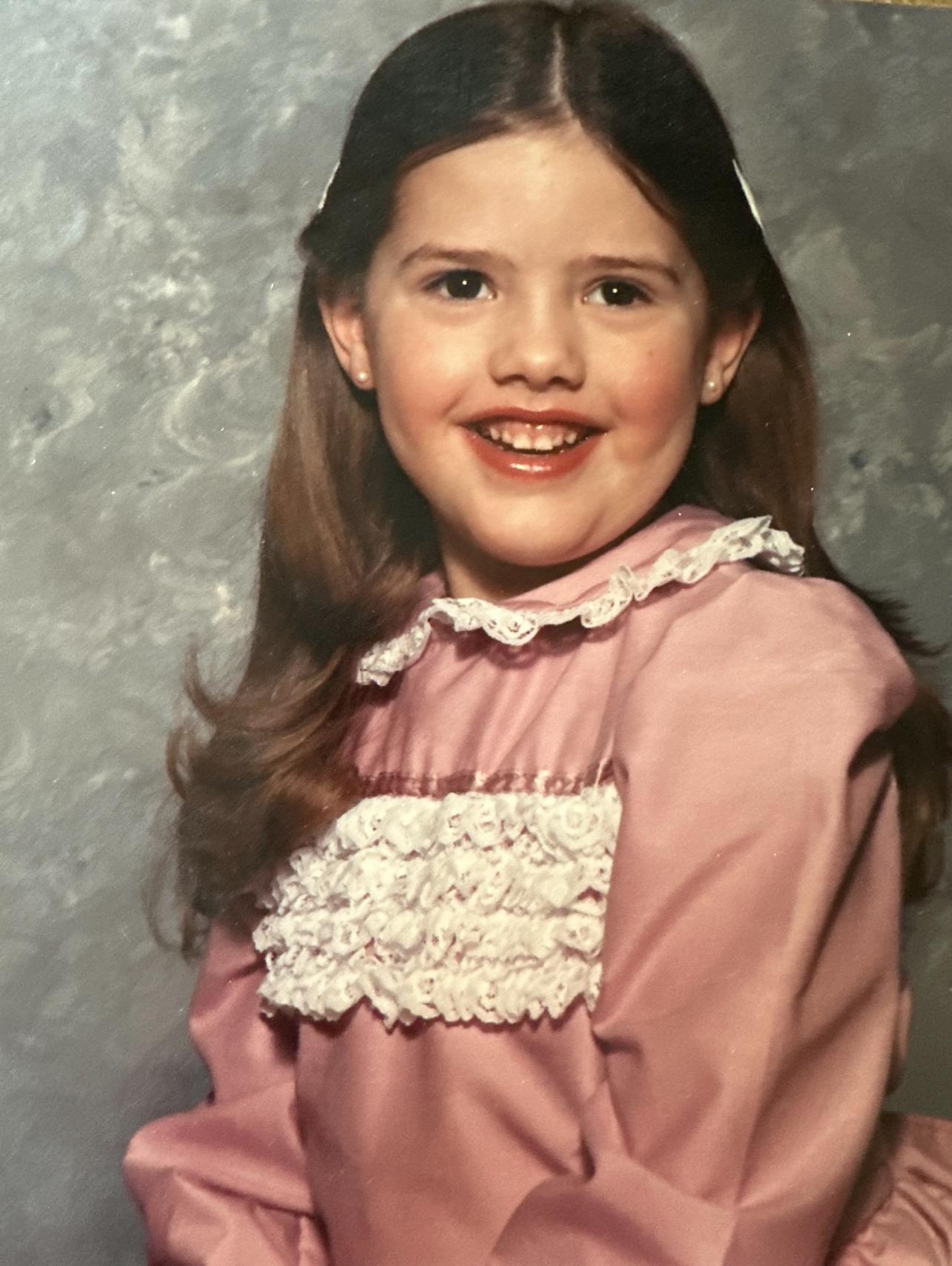 Jessica Hooten Wilson poses for a photo in kindergarten. She said she was drawn to adventure stories at this age.