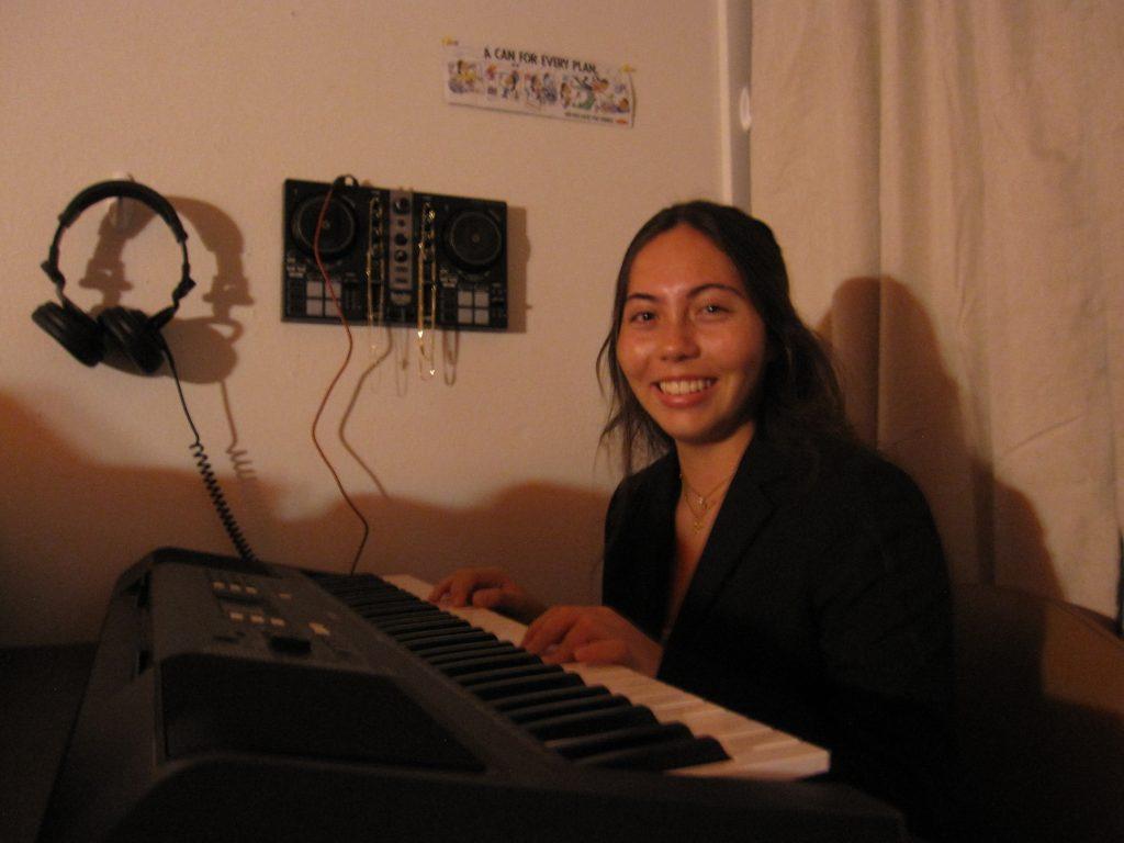 First-year Fiona Dandler takes an evening after classes to play hymns on her keyboard at her first-year dorm in Darnell on Feb. 6. Fiona said this traditional style of music is soothing because it allows her to connect with her faith. Photo courtesy of Fiona Dandler