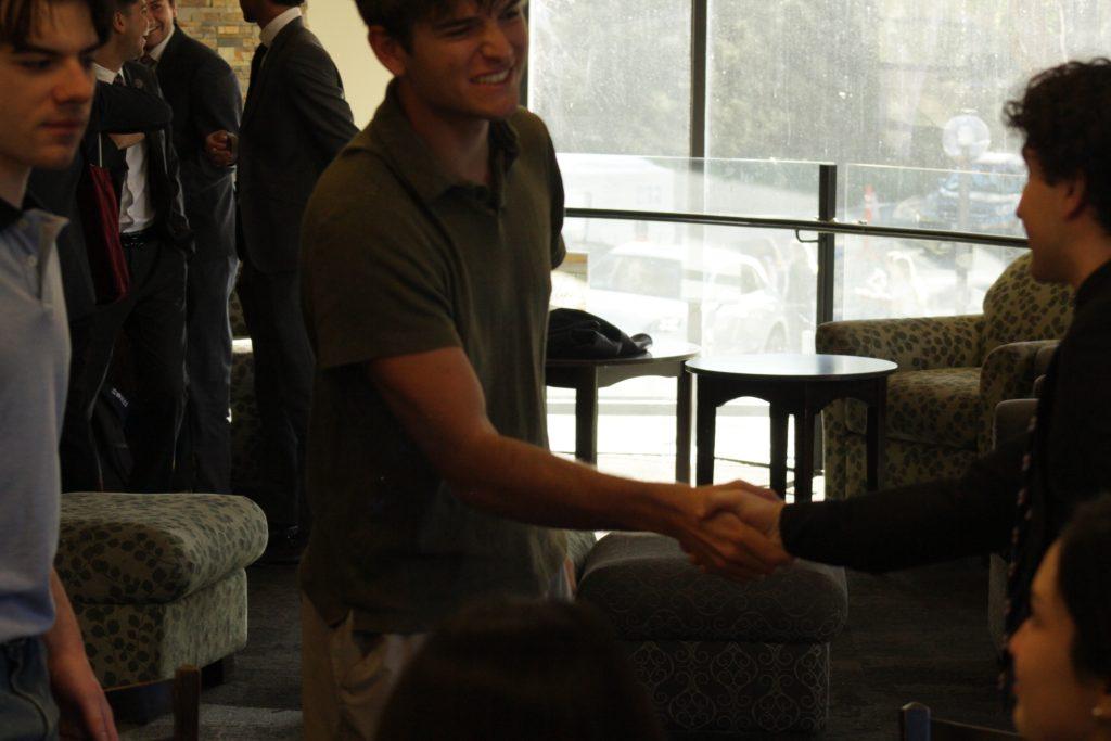 A student (left) shakes hands with Freshman Class Senator Christian Soulos (right) after the committees concluded at the Howard A. White Center (HAWC) on Feb. 4. President H.L. McCullough said SGA did not have committees when he was a freshman. Photos by Oliver Evans
