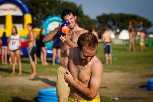 The Water Wars event provided participants with the opportunity to soak their friends in more ways than one. Giant slides and obstacle course runs made competition run high, and kiddie pools were frequent locations of dumping grounds for innocent bystanders. Water balloons and water gun fights littered Alumni Park.