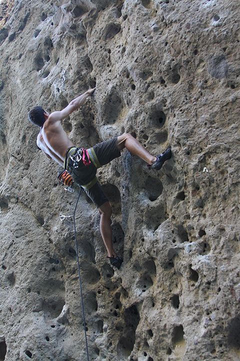 A: My craziest memory from climbing so far would have to be from this last Sunday because that memory is still pretty fresh. I was on lead on a sport route, which means the rope was coming up from the ground, meaning if I fell, I would fall a decent distance. I was about to clip the next protection bolt, which is where if you fall, you will take the farthest fall on the route. Well, right before getting my rope into the next and last protection point, I fell. I fell about 30 feet which is fairly common in climbing, but what wasn’t normal was that I ended up upside down while I was falling. That’s a big no-no. The rope had caught behind my leg and flipped me. Fortunately, the fall was clean because the route was overhanging and I didn’t end up hitting the rock too hard or hitting my head which is a real danger when you fall inverted. That gave me quite the rush, and it seemed to amuse everyone watching. This incident reminded me it’s good to scare yourself every once in a while and try to work through that fear, all while being safe of course.