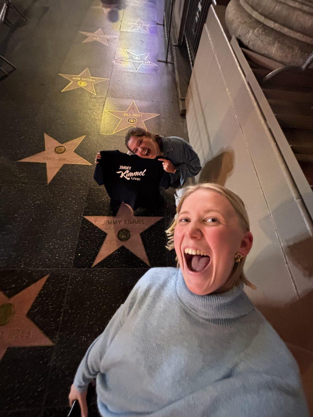 Seniors Brantley Holladay and Maren Rasmussen take a selfie at a Jimmy Kimmel Live taping Jan. 21. Holladay said she wants to explore more of the surrounding LA area. Photo courtesy of Brantley Holladay