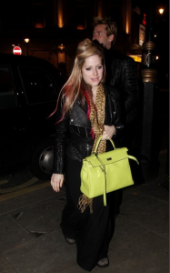 Avril Lavigne and Chad Kroeger leave NOBU on October 9, 2012. The Complicated singer who is rumored to be pregnant with her Nickelback star fiance hid her belly with a large neon handbag.