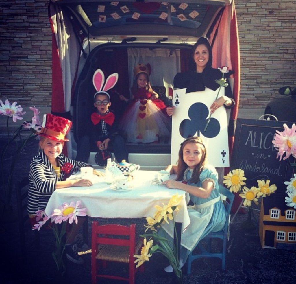 Junior Ava Walters (far right, sitting down) dresses as Alice from “Alice in Wonderland” for “Trunk or Treat” in 2011. Walters said her family goes all out for the holiday each year. Photo courtesy of Ava Walters