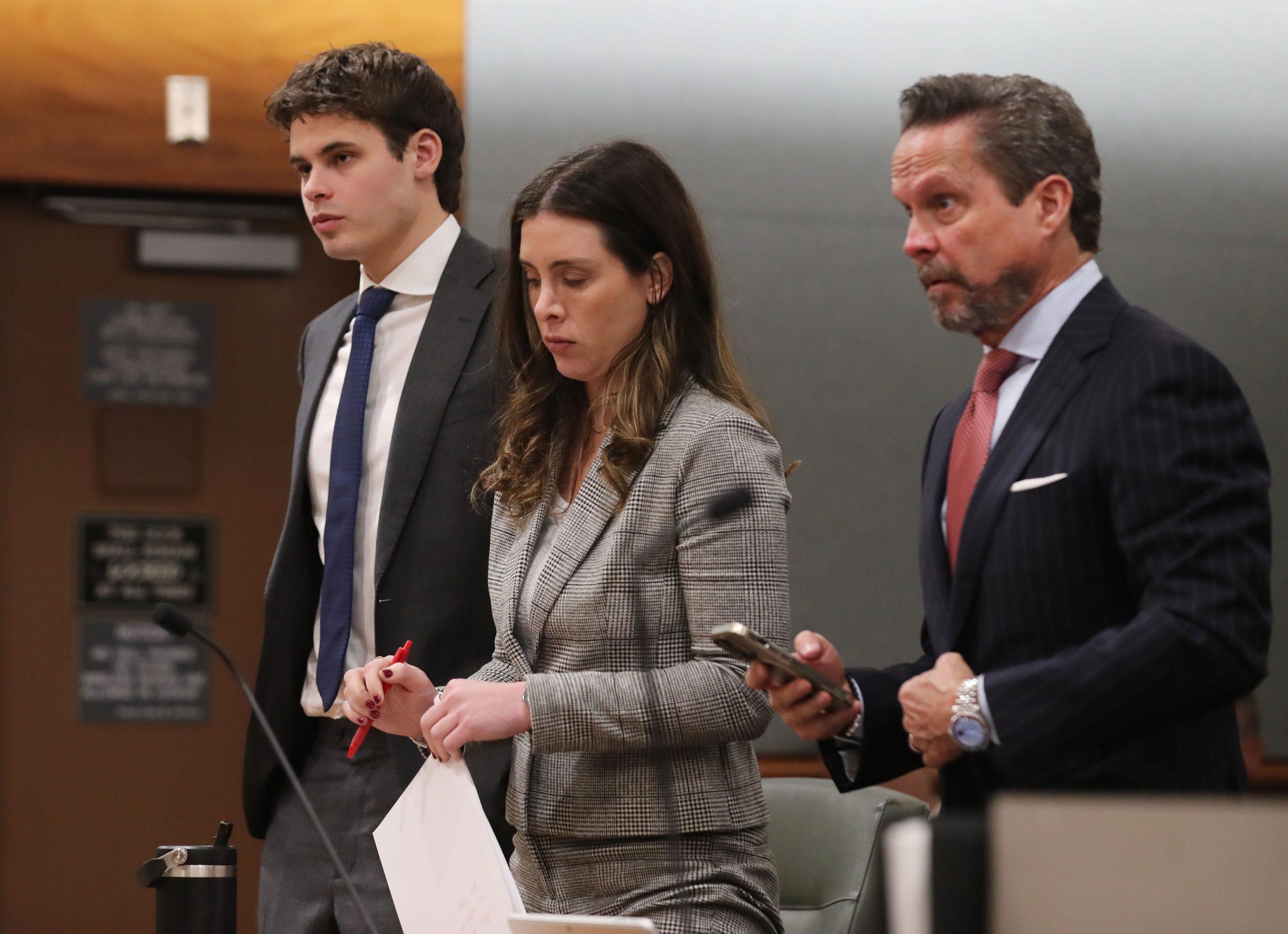 Bohm, Sparagna and defense attorney Alan Jackson stand inside the courtroom at the Van Nuys Courthouse for a pre-trial hearing Feb. 10. Bohm’s defense requested Statewide Integrated Traffic Records System reports. Photo courtesy of David Buchan