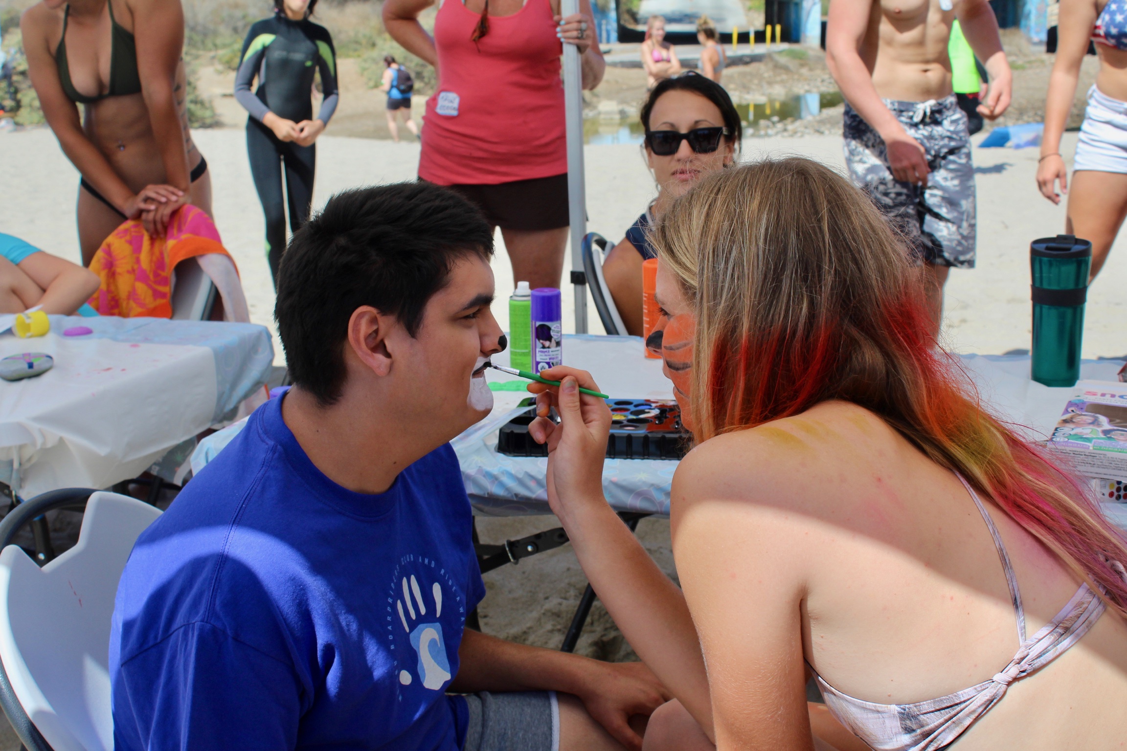 When their surf session was over, they headed in for beach activities. With a station for face paint, tattoos and hair dye, the children and volunteers had a ball drawing silly things on their faces and dying their hair strange colors. Sandcastles were constructed using shovels, rocks and pails and the obstacle course provided fun competition for all.