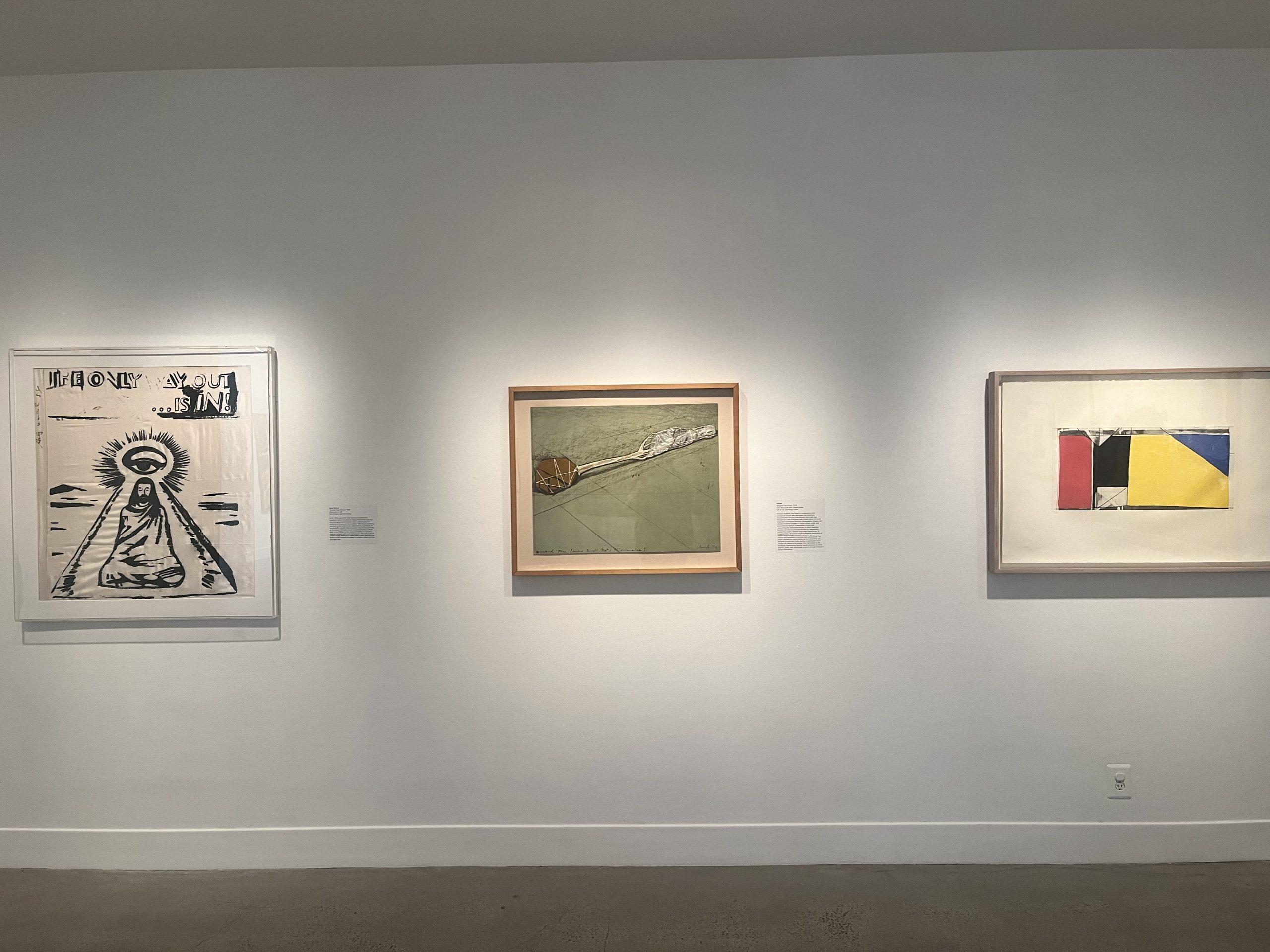 Three pictures that are a part of the ‘A Modern Look’ exhibit hang on the wall in the Weisman Museum on Jan. 23. From left to right, the paintings featured were painted by Andy Warhol, Christo and Richard Diebenkorn. Photos by Alicia Dofelmier
