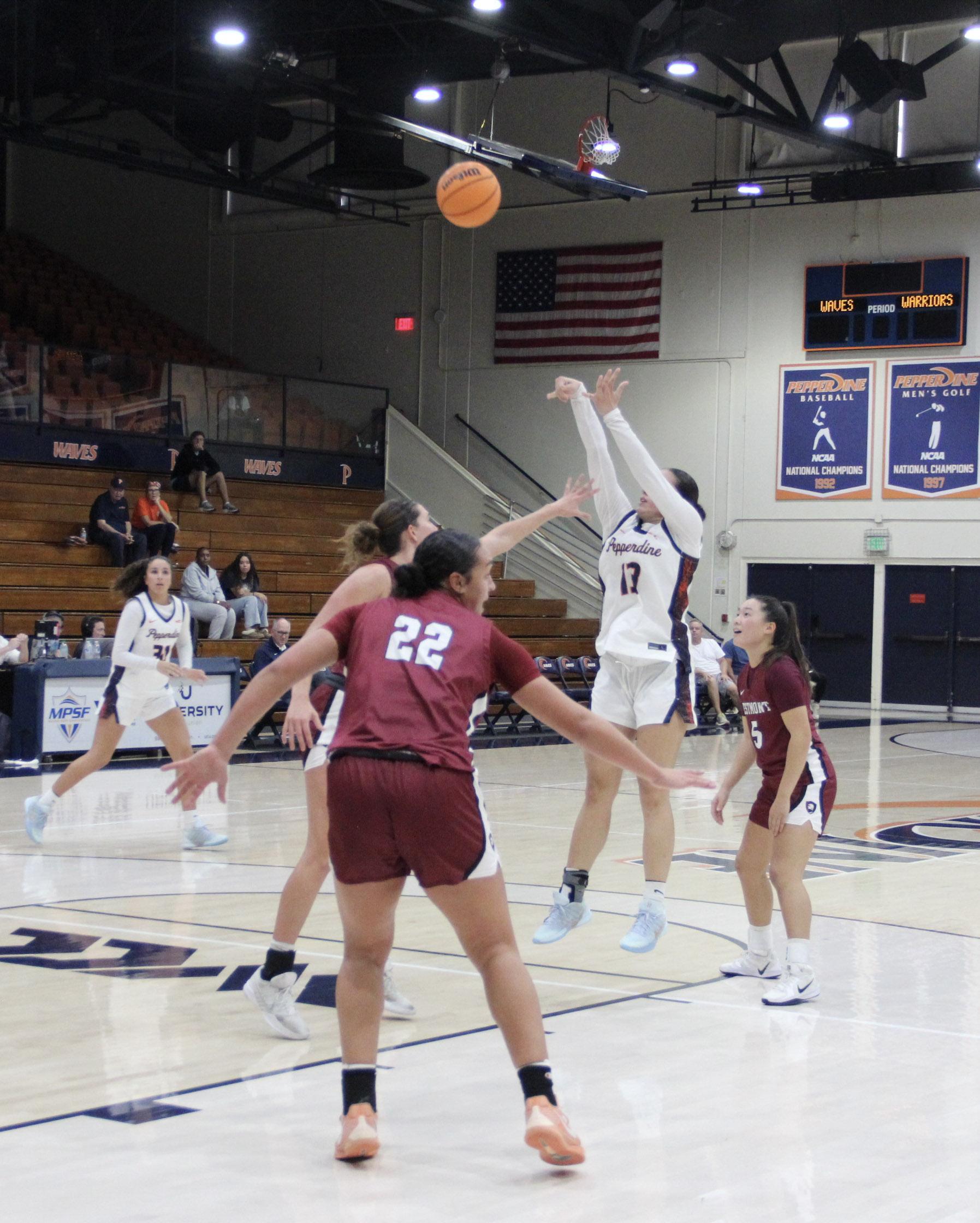 The Waves struggled at the start of the game, as Westmont made two quick threes to take an 8-4 lead with seven minutes to go. Pepperdine could not stop the Warriors three ball, as another three from Westmont put the Warriors up seven.